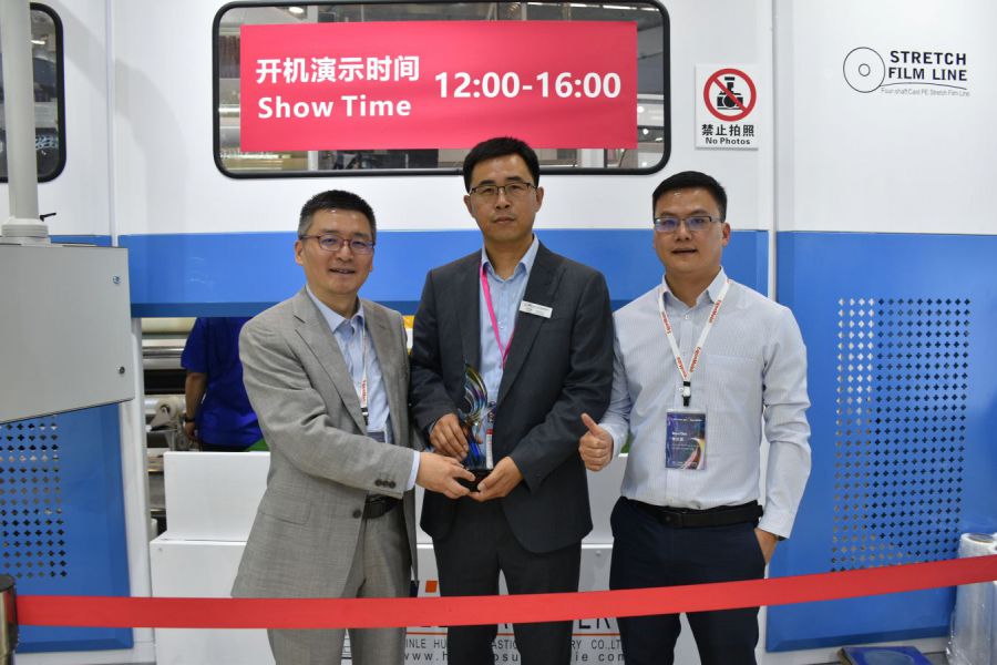 展會(huì)上,新樂華寶流延機(jī)大放異彩,攜3米11層高速全自動(dòng)纏繞膜生產(chǎn)線亮相展會(huì),現(xiàn)場(chǎng)開機(jī)速度高達(dá)500m/min,讓國內(nèi)外客戶再一次見證我們?cè)诹餮有袠I(yè)雄厚的技術(shù)實(shí)力與創(chuàng)新能力,贏得了業(yè)界及客戶們的一致好評(píng)。