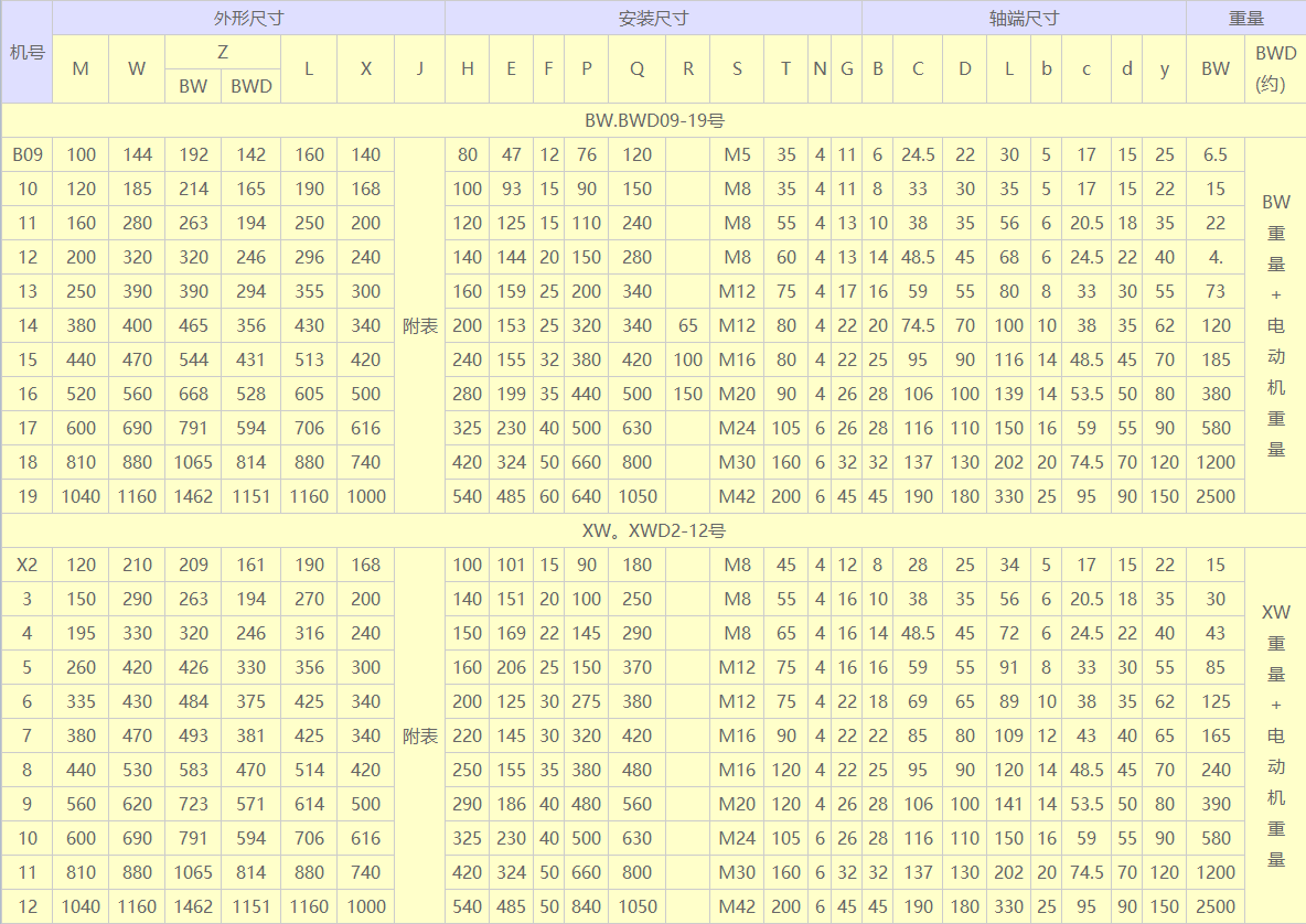 >> BW.BWD XW.XWD型(單級)擺線針輪減速機(jī)