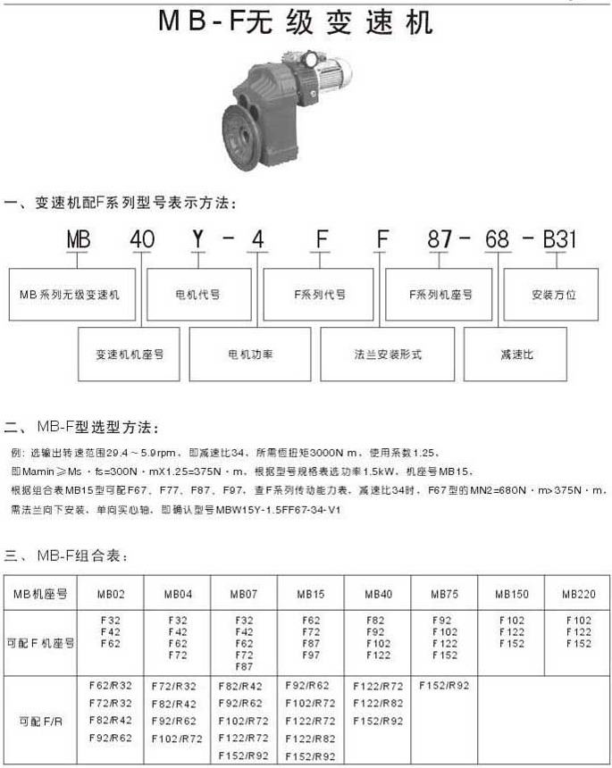 MB-F無級(jí)變速機(jī)變速機(jī)配F系列型號(hào)表示法MB-F選型方法MF組合表