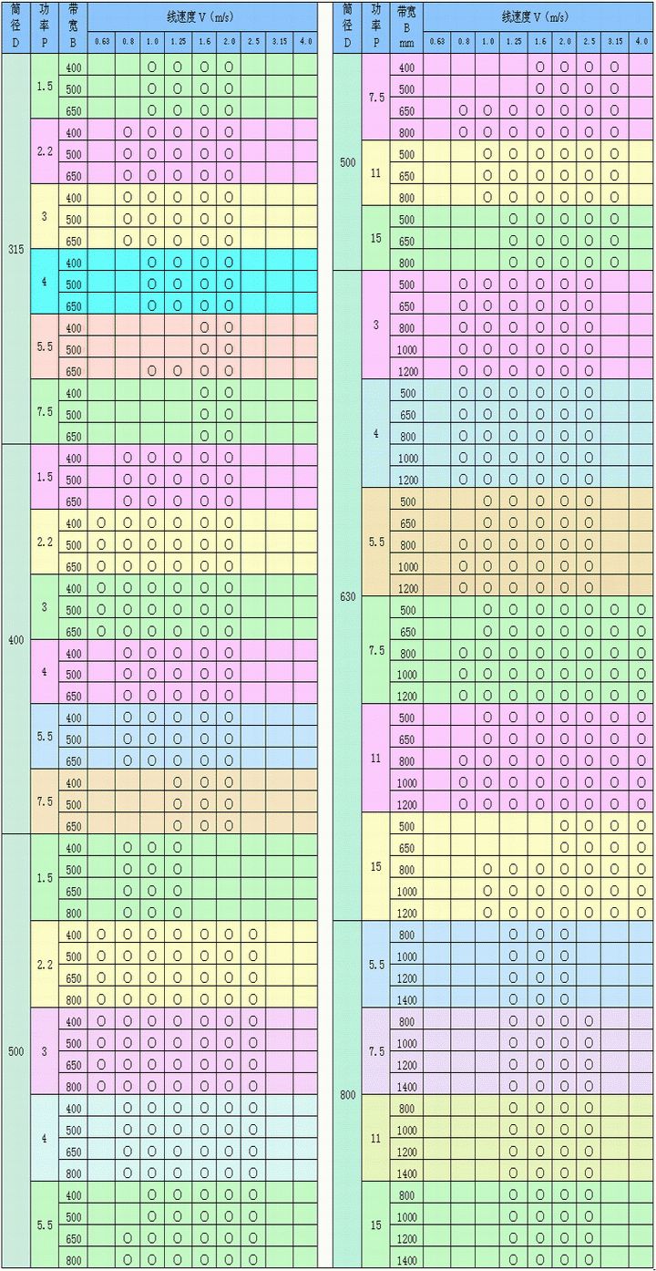 WD 型外裝式電動(dòng)滾筒系列參數(shù)表: